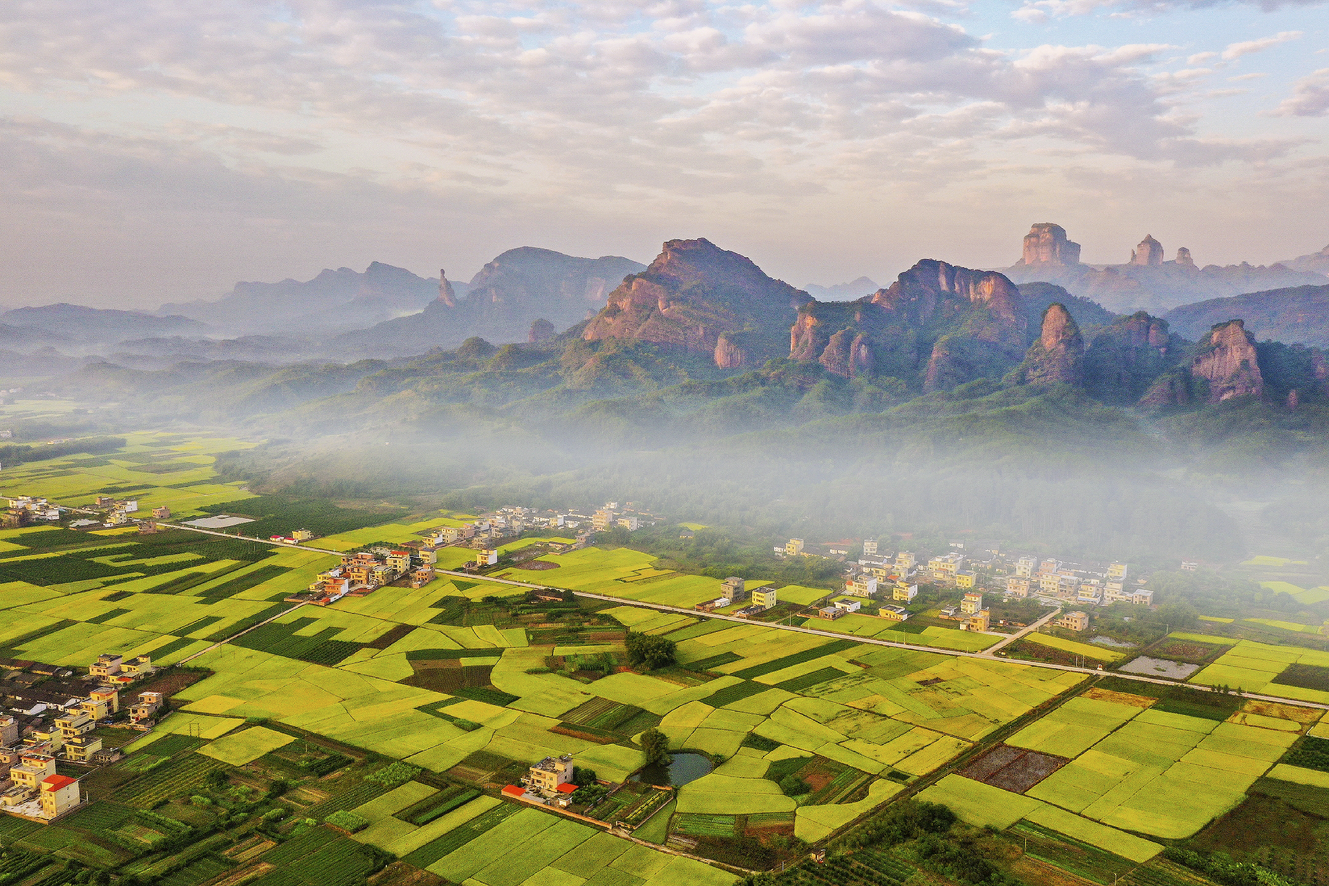 韶关丹霞山附近乡村航拍。