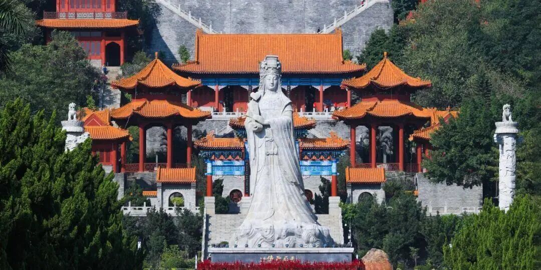 南沙天后宫面朝大海,被誉为“天下天后第一宫”。从14.5米高的天后圣像下拾级而上,伶仃洋的壮阔尽收眼底。这座明代天妃古庙在重建之后,已成为东南亚最大的妈祖庙,香火鼎盛,既是祈福圣地,也串起了海内外华人的情感纽带。