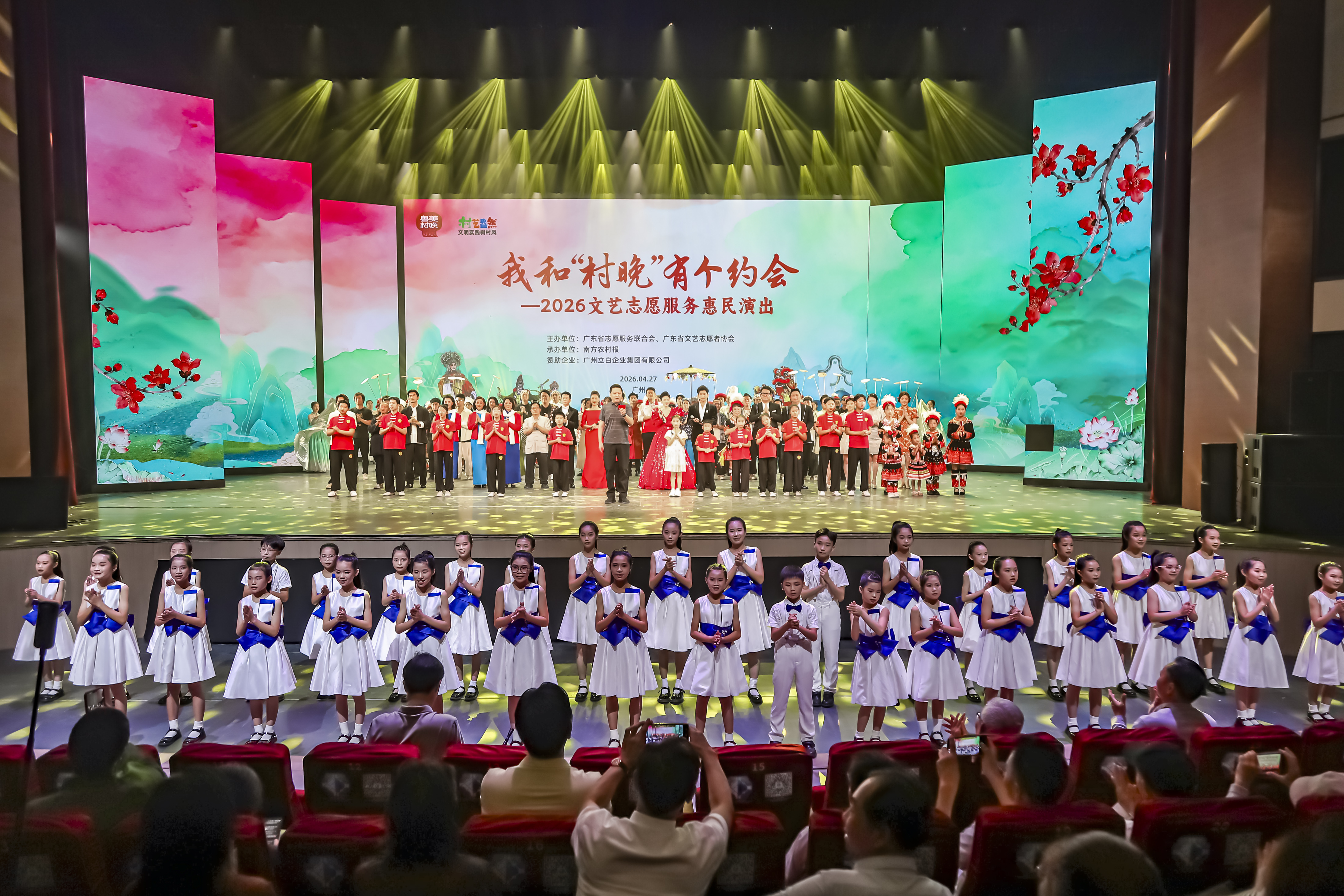 一台演出,从乡野走进都市剧场,本身就构成一个意味深长的文化现象。4月27日晚,广州文化馆剧场,当“我和村晚有个约会”——2026广东文艺志愿服务惠民演出拉开帷幕时,人们看到的不仅是一台精彩的文艺晚会,更是广东乡村文化振兴从田野到剧场、从春节到“五一”假期前、从一时一地到常态长效的坚实跨越。以2026年春节全省21个地市34场原创村晚、超1300场各级活动的磅礴势能,这场惠民演出的精彩绽放,正是一次透过“粤美村晚”观察广东乡村振兴、基层治理创新与农文旅融合发展的重要窗口。这台由乡土文化孕育而生的文艺盛宴,以文化为种子,在岭南广袤田野唱响三重奏,耕耘繁花似锦的乡村振兴新图景。